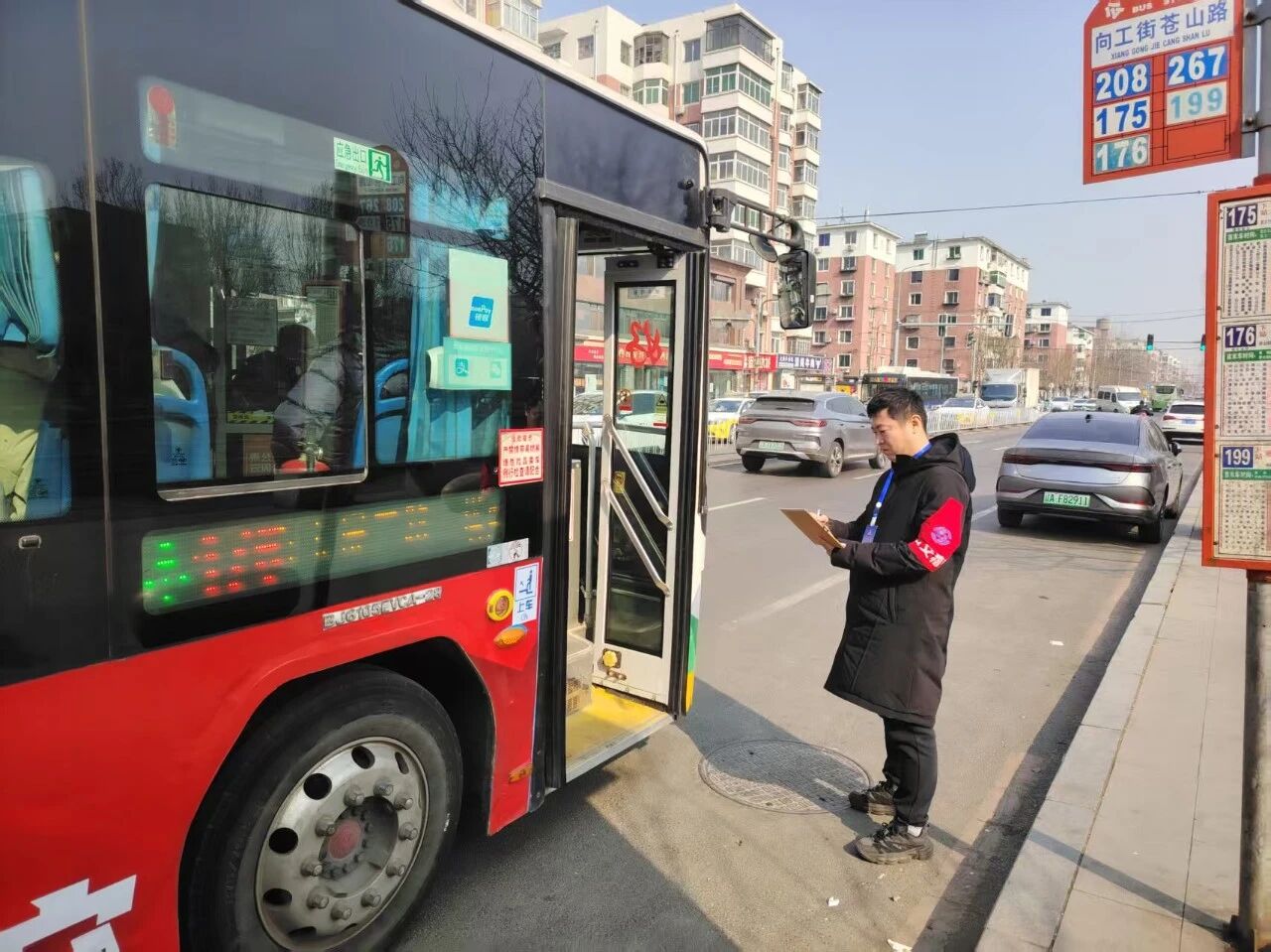 各車隊管理人員佩戴統(tǒng)一胸牌和袖標(biāo),開展常態(tài)化巡查。巡查覆蓋所有運營時段,對車輛運營情況進行監(jiān)督。一方面,將“降車速、防超速”作為安全管理的重中之重,嚴格檢查車輛在路口、學(xué)校及人流密集路段的通行情況;另一方面,強化監(jiān)票管理,進一步規(guī)范票款收繳、免票政策執(zhí)行等關(guān)鍵環(huán)節(jié)。