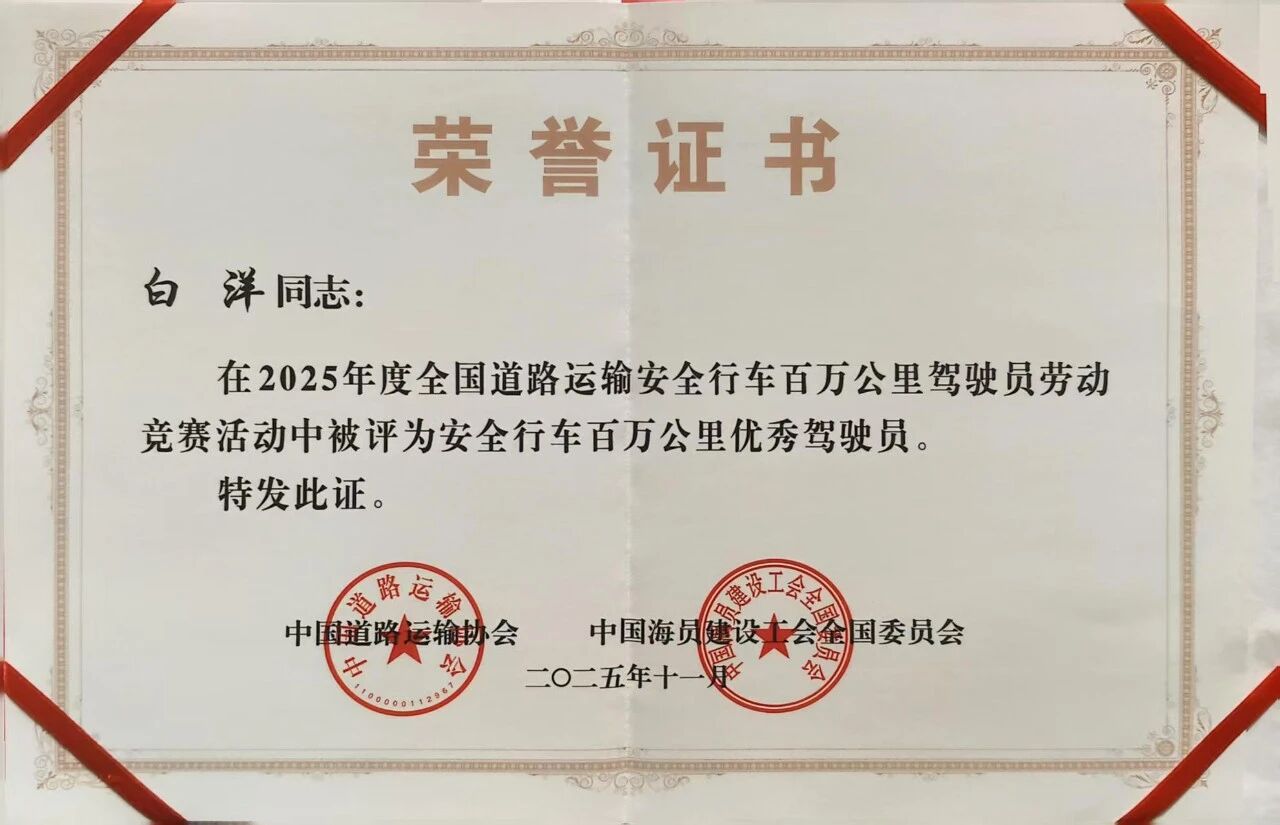 會(huì)上,沈陽(yáng)客運(yùn)集團(tuán)黃河公司青城山路車隊(duì)190路三星級(jí)駕駛員白洋同志獲得的榮譽(yù)表彰成為全場(chǎng)矚目的亮點(diǎn)——在2025年度全國(guó)道路運(yùn)輸安全行車百萬(wàn)公里駕駛員勞動(dòng)競(jìng)賽活動(dòng)中,白洋獲評(píng)“安全行車百萬(wàn)公里優(yōu)秀駕駛員”,交通運(yùn)輸部科學(xué)研究院首席研究員、學(xué)術(shù)委員會(huì)常務(wù)副主任李忠奎親自為他頒發(fā)獲獎(jiǎng)證書(shū)。這份殊榮在遼寧省僅有兩人獲得,為沈陽(yáng)客運(yùn)集團(tuán)贏得了榮光。