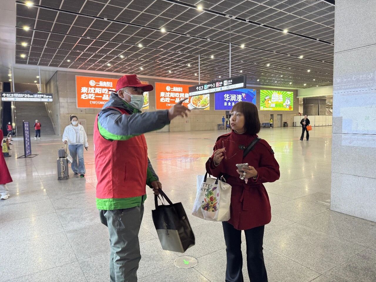 一位從外地回沈陽(yáng)的王女士感慨:“剛出站有點(diǎn)懵,志愿者不僅告訴我怎么坐車,還提醒我注意臺(tái)階,幫我查了目的地附近的餐館。沈陽(yáng)的第一印象,就是暖?!?/p>